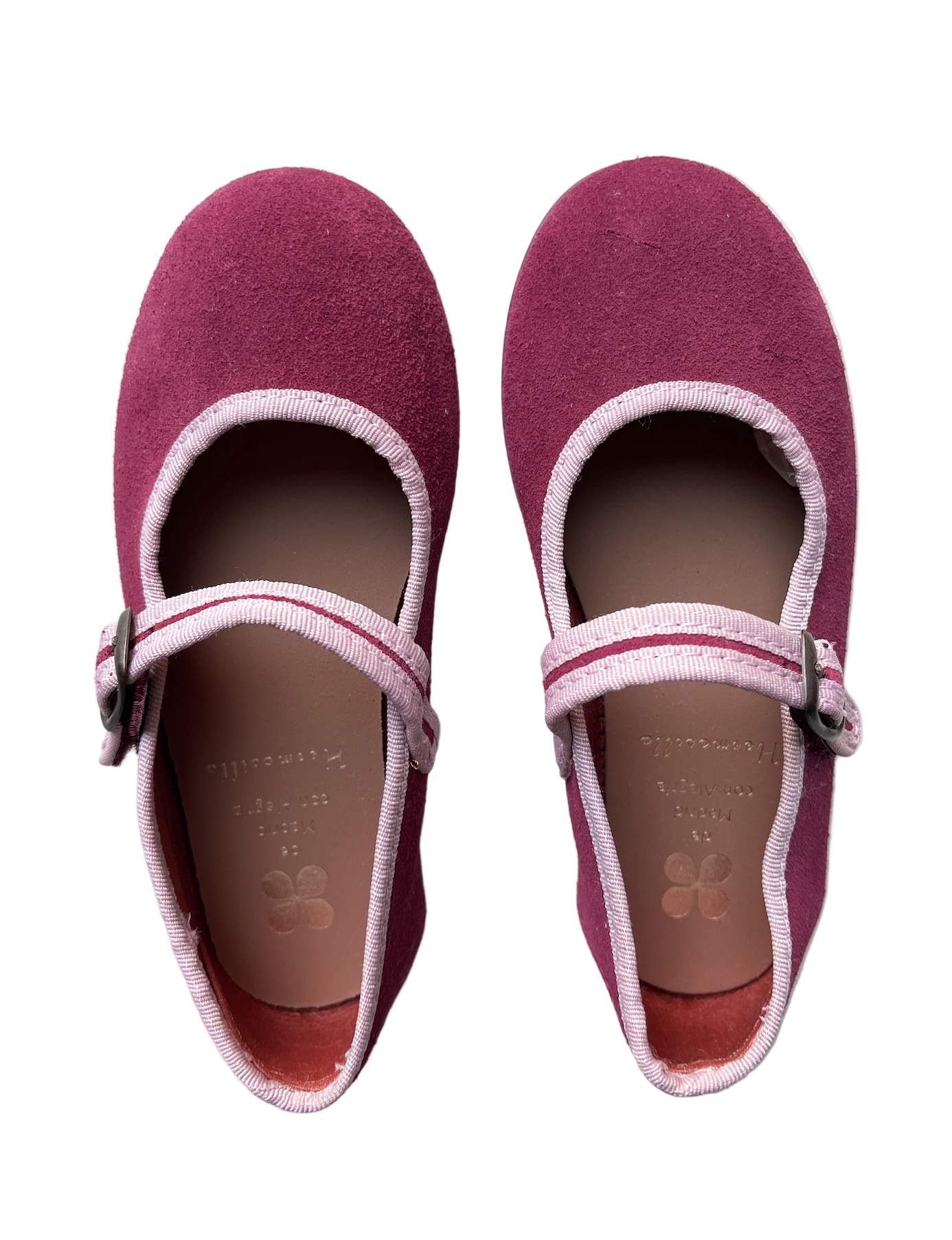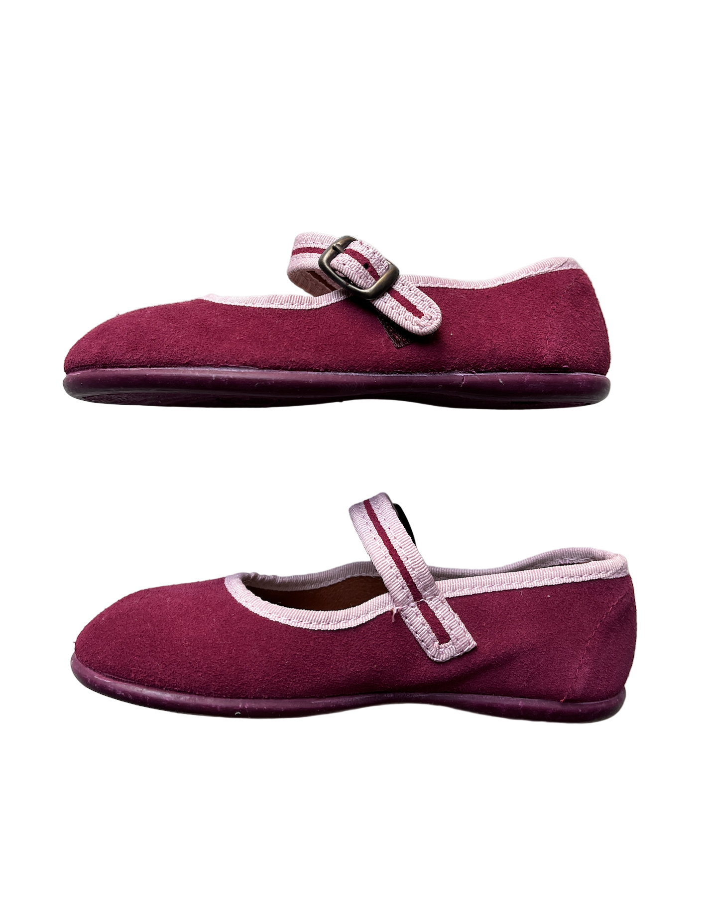 Hermosilla Meutte in Bordeaux Suede Ballerina with a non-slip Rubber Sole (strong velcro hidden under buckle)