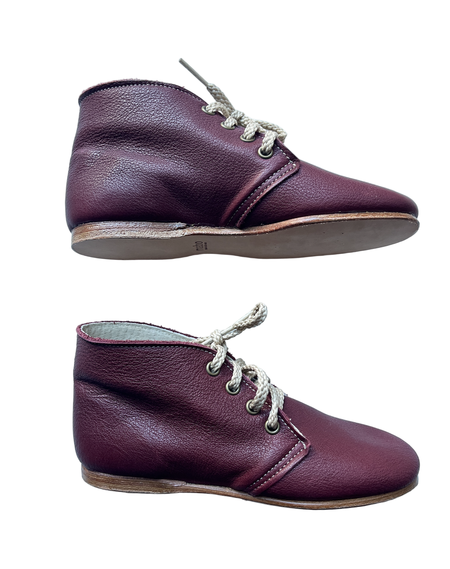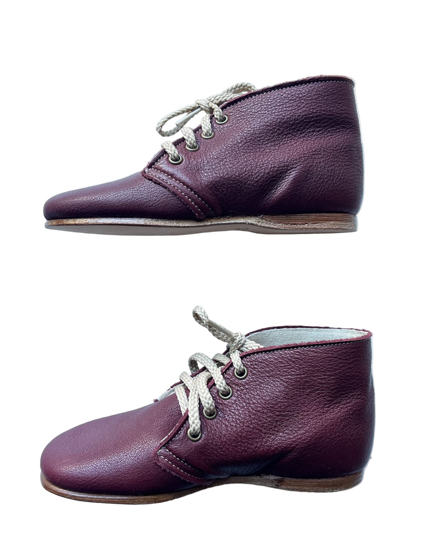 Mabo Burgundy Soft Leather Lace Up Boot with Leather Sole