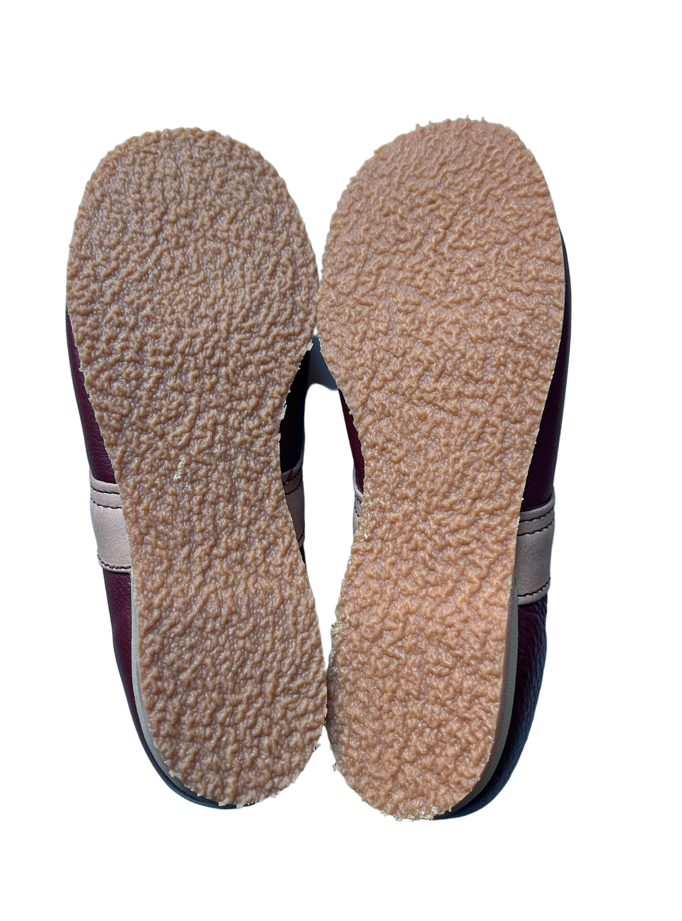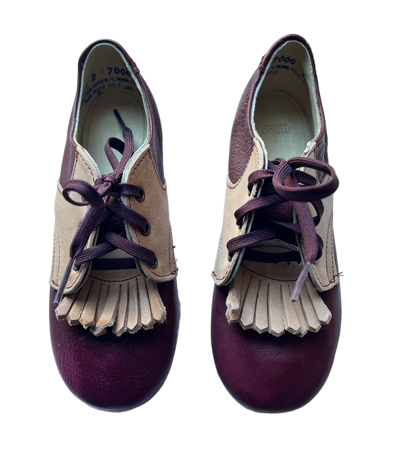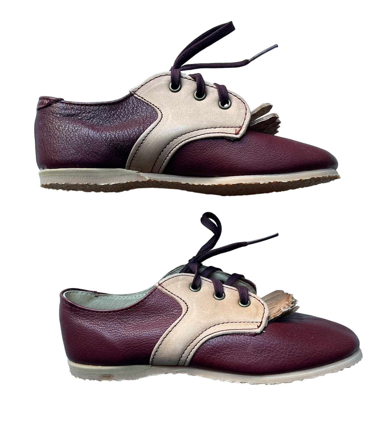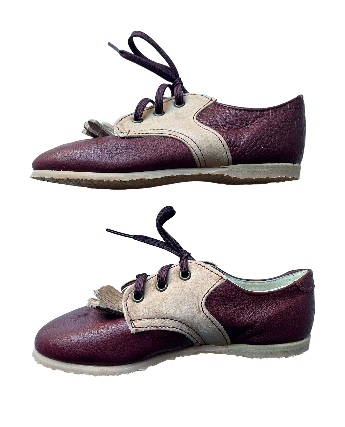 Mabo Fringed Saddle Shoe, Burgundy and Natural with Rubber Sole