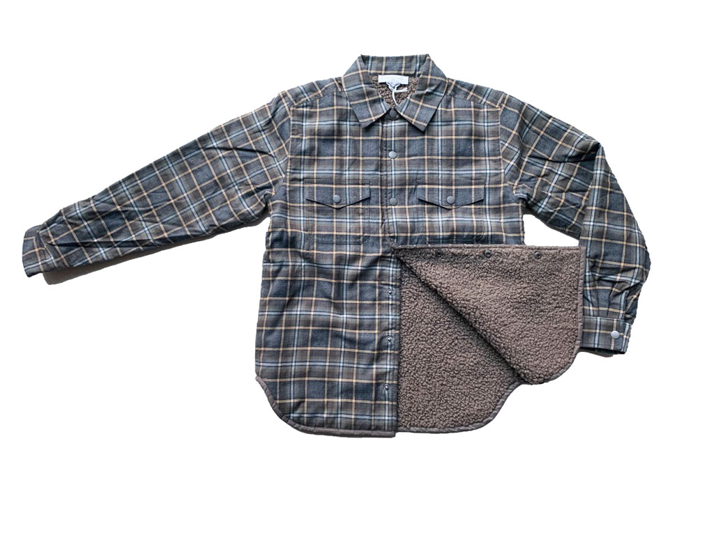 Stella McCartney Sage Flannel and Faux Shearling Lined Tartan Shirt with Snaps